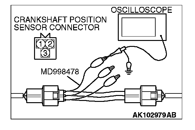 3. Disconnect the crankshaft position sensor connector, and connect the test harness special tool (MD998478) in between.