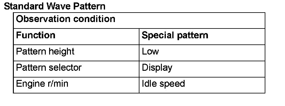 2. Connect the oscilloscope probe to PCM terminal No. 70. (Check the crankshaft position sensor signal wave pattern.) Standard Wave Pattern