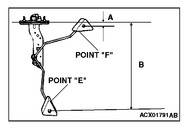 FUEL LEVEL SENSOR FLOAT HEIGHT1. Move the float and measure height A at point "F" (highest) and B at point "E" (lowest).