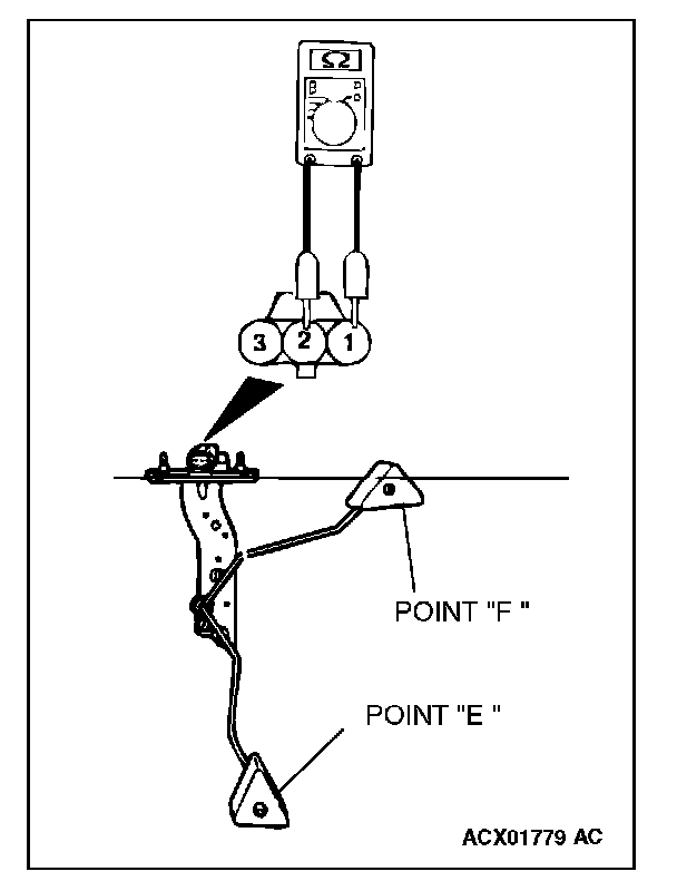 FUEL LEVEL SENSOR RESISTANCE1. Check that resistance value between the fuel gauge terminal and ground terminal is at the standard value when the fuel level sensor float is between point