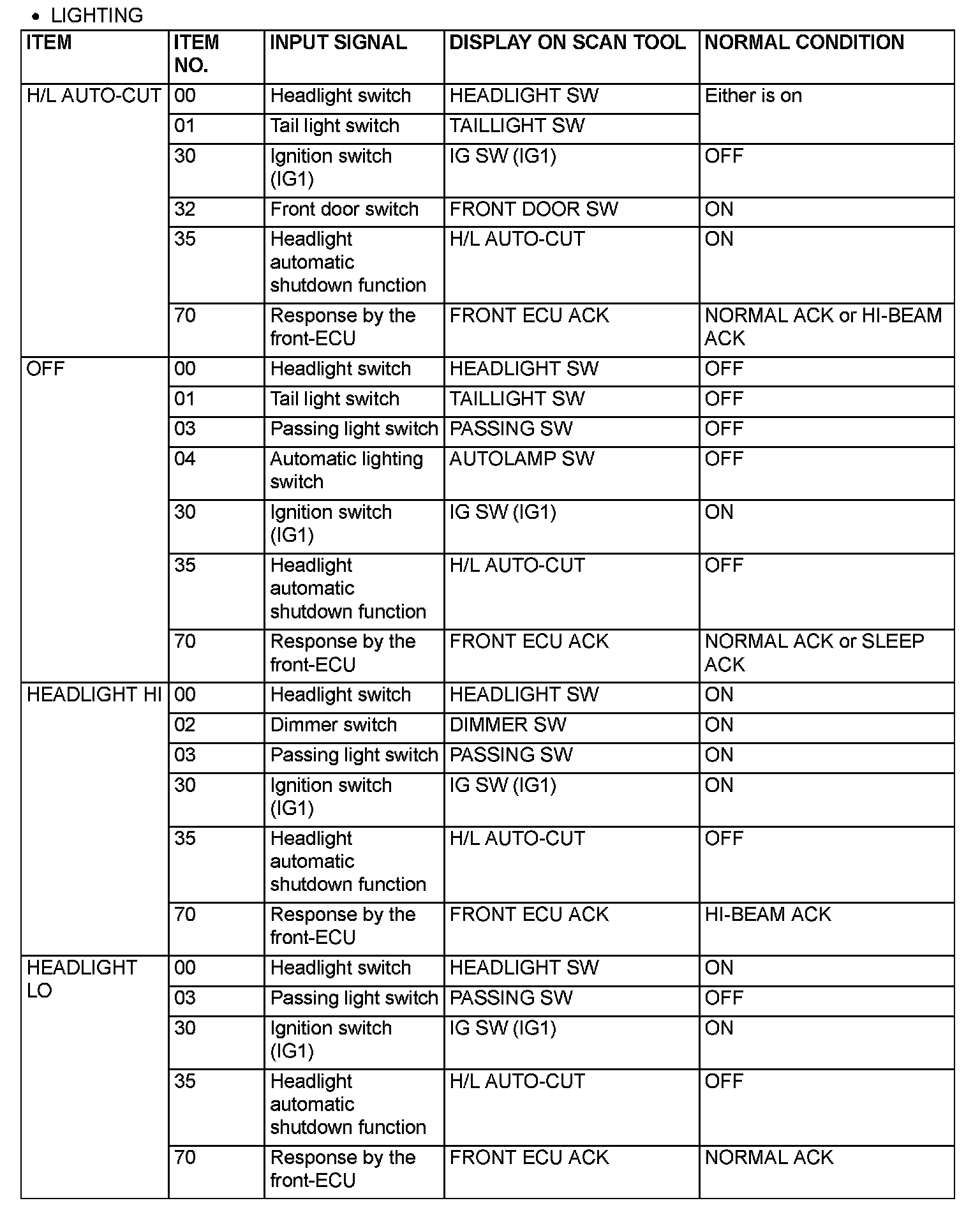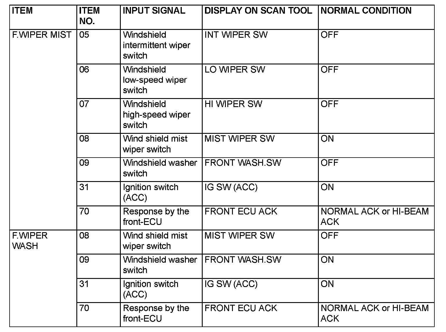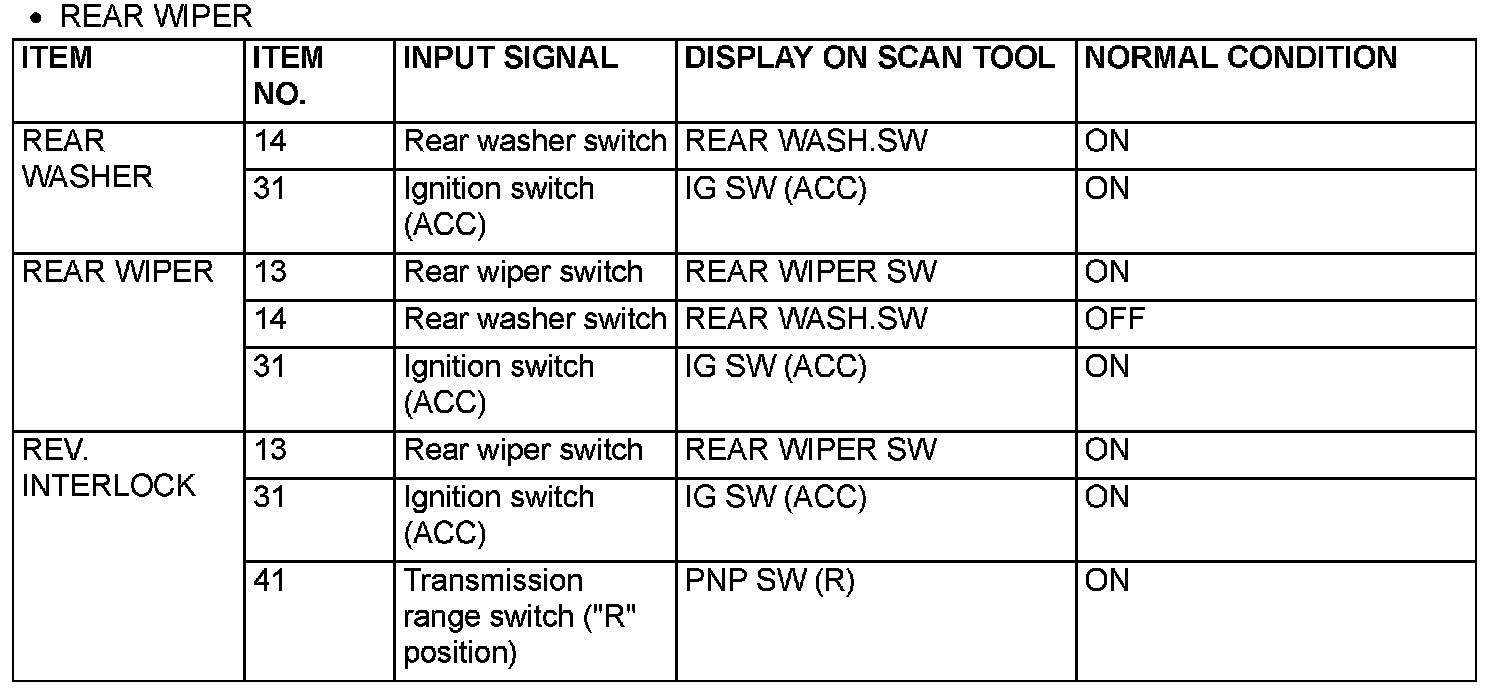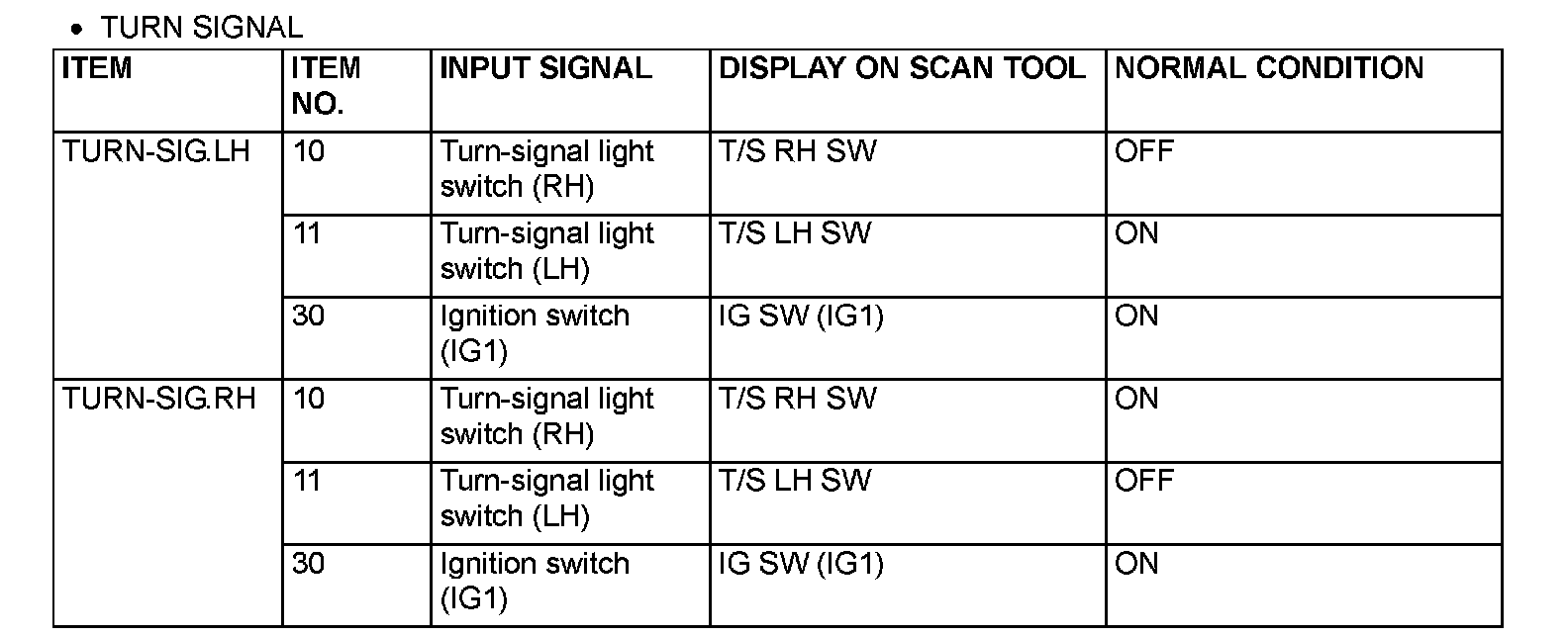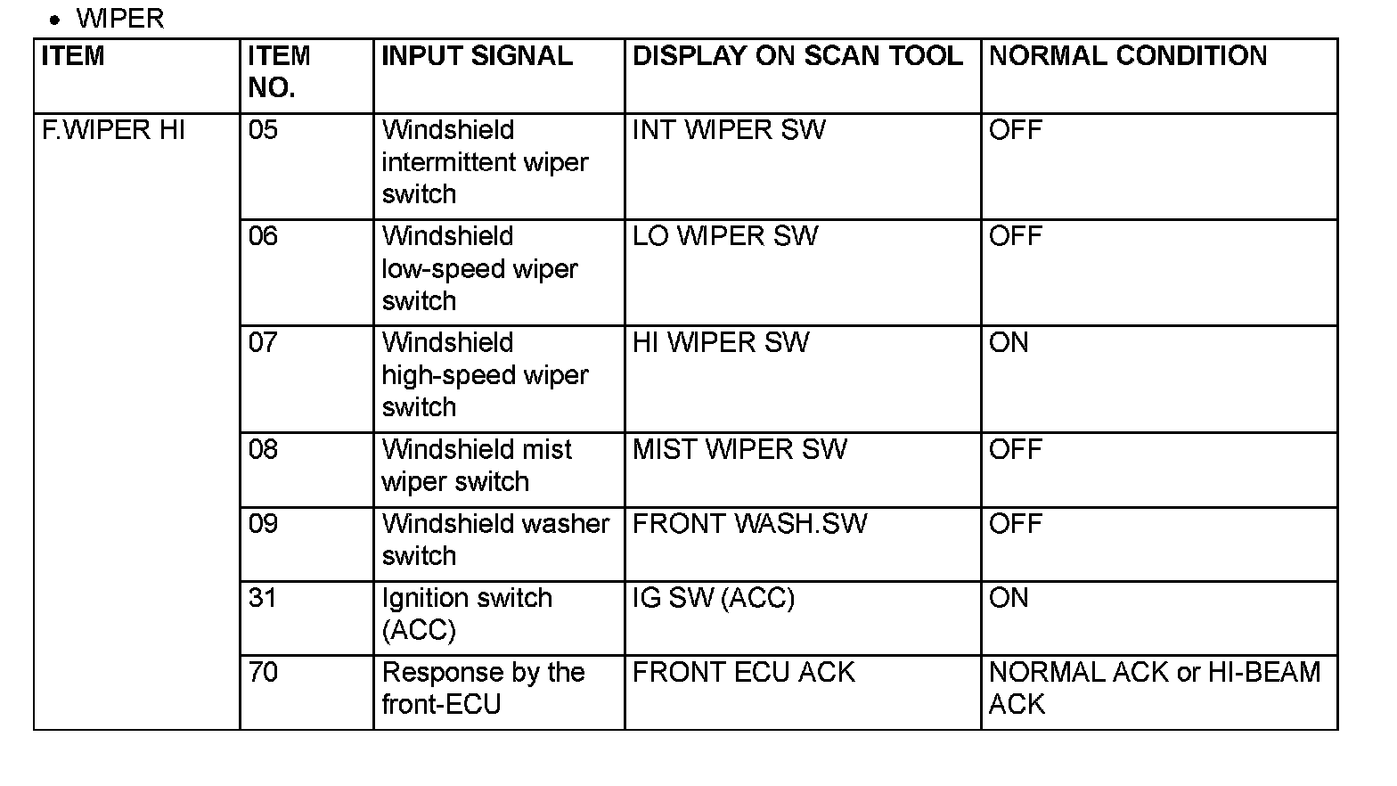 The table shows the service data and their normal condition, which are displayed during the "FUNCTION DIAG." The row "Normal condition" shows values, which are shown when each operation is made.