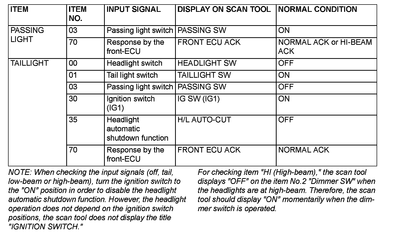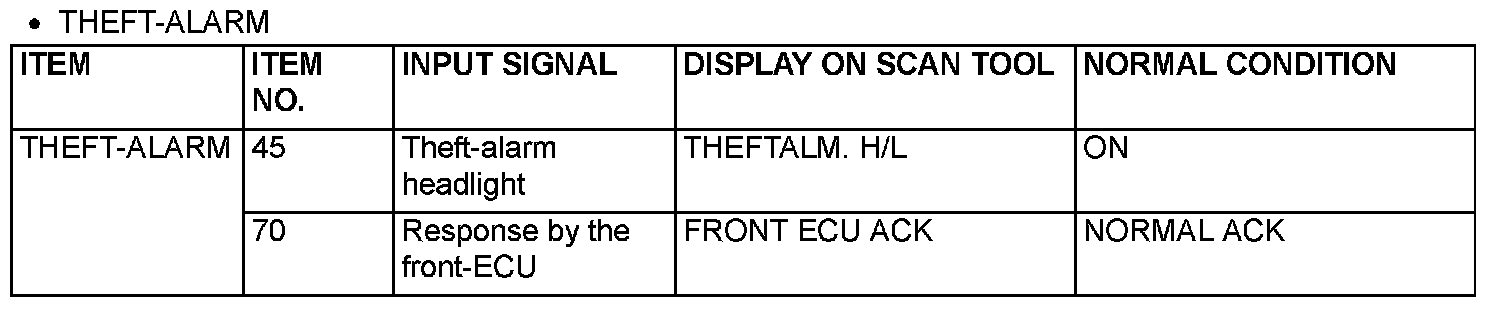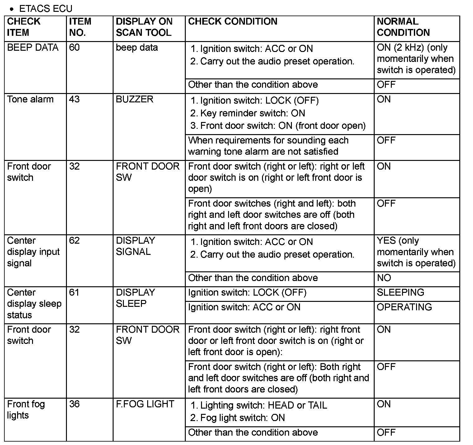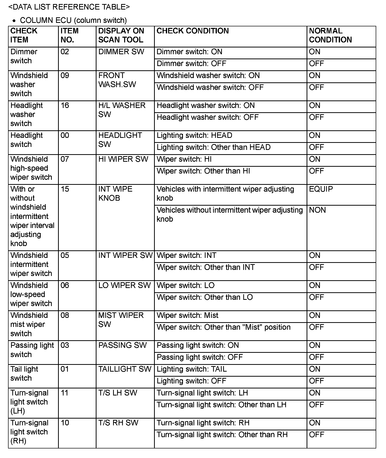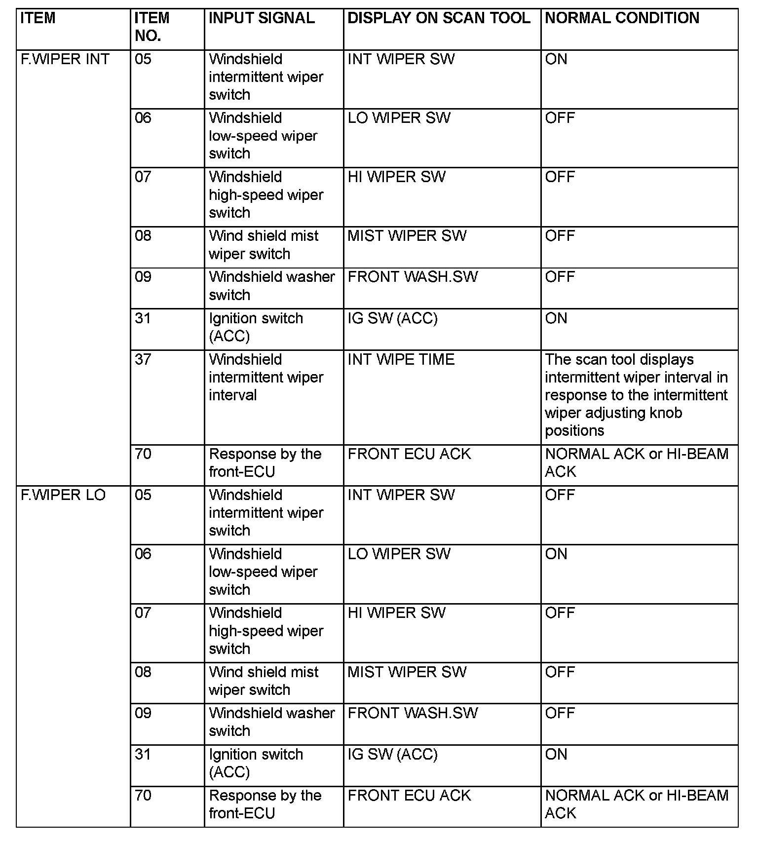 The table shows the service data and their normal condition, which are displayed during the "FUNCTION DIAG." The row "Normal condition" shows values, which are shown when each operation is made.