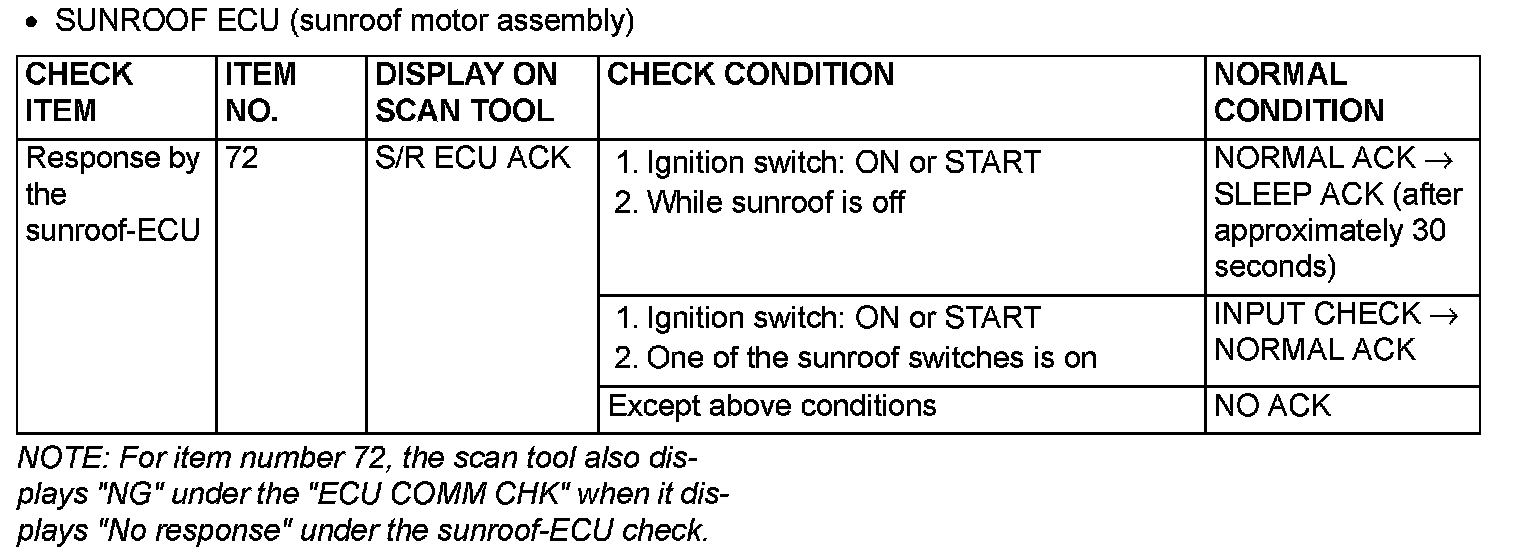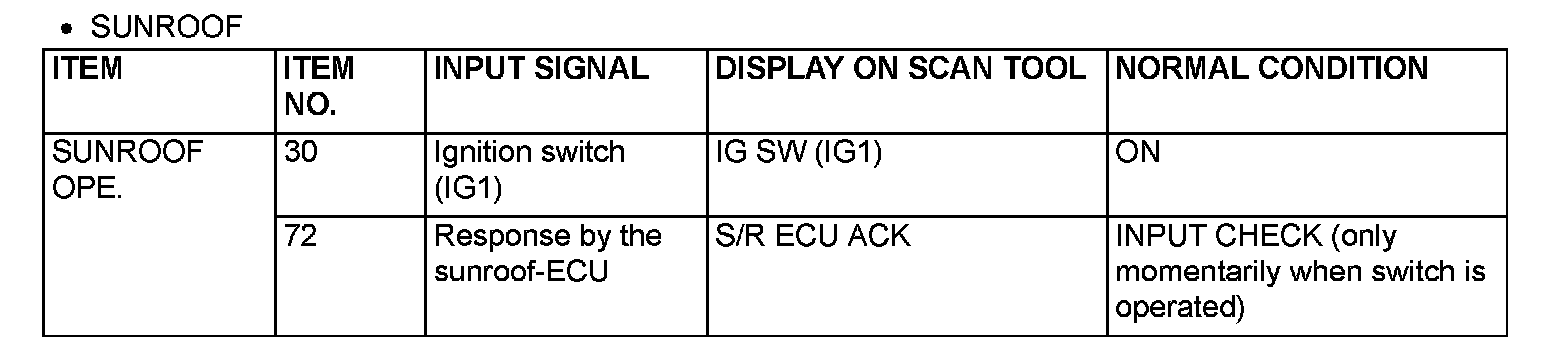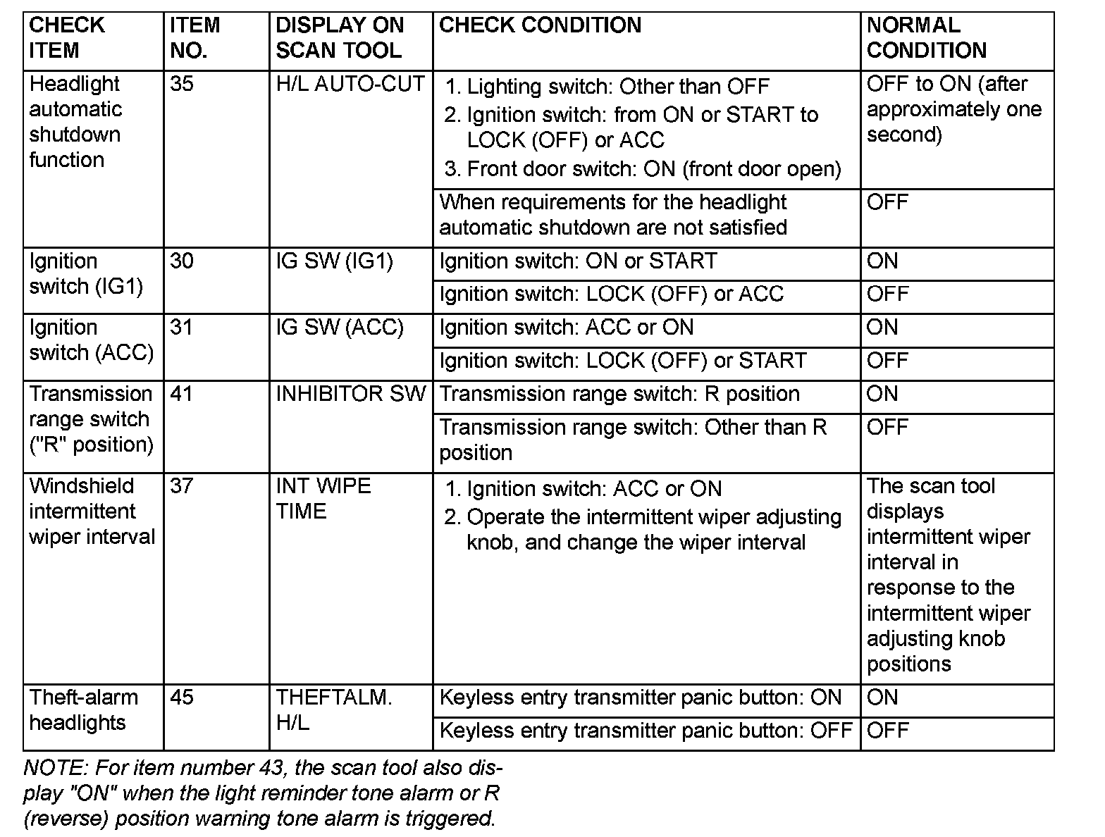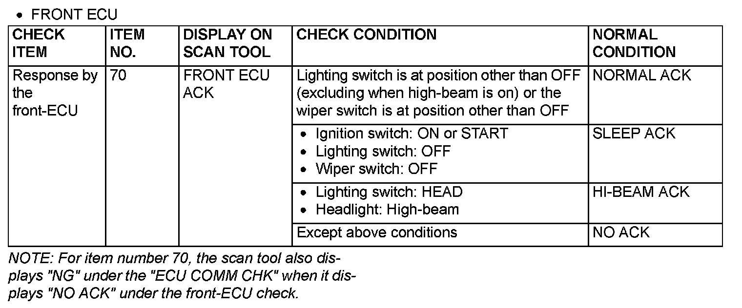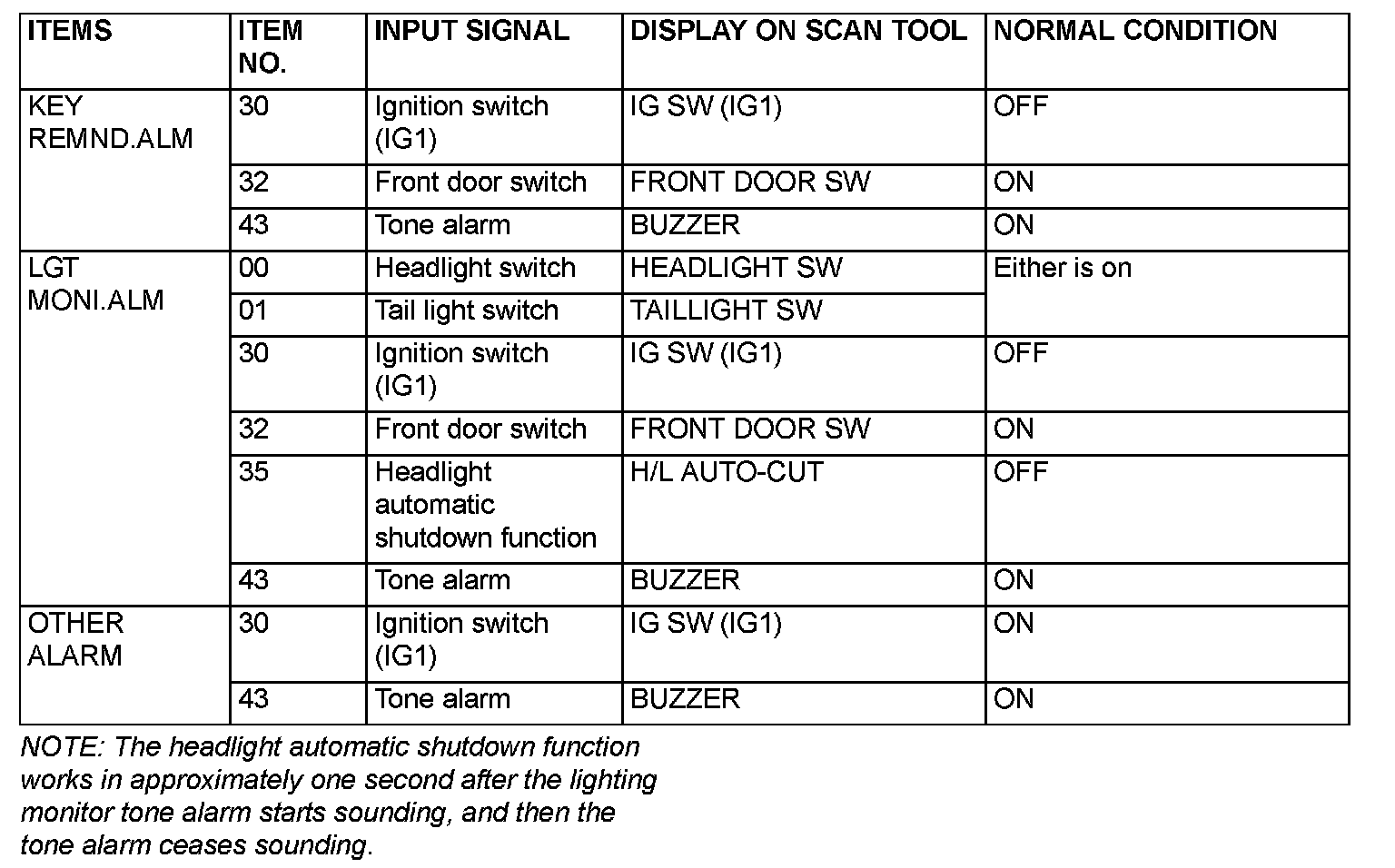 The table shows the service data and their normal condition, which are displayed during the "FUNCTION DIAG." The row "Normal condition" shows values, which are shown when each operation is made.