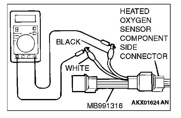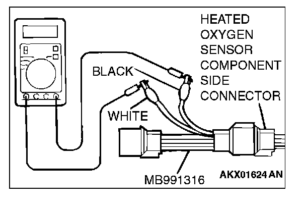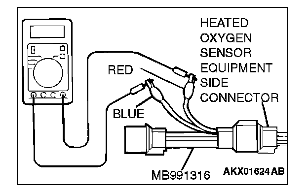 1. Disconnect the heated oxygen sensor connector and connect special tool MB991316 to the connector on the heated oxygen sensor side.