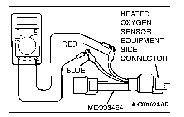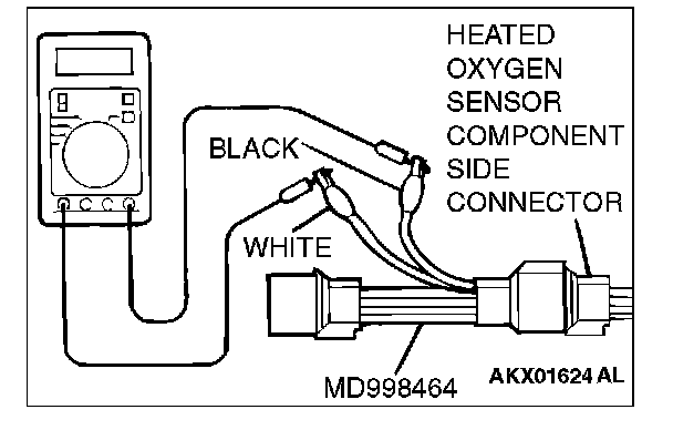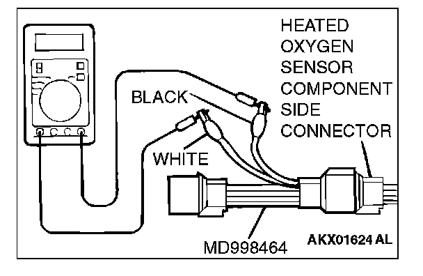 1. Disconnect the heated oxygen sensor connector and connect special tool MD998464 to the connector on the heated oxygen sensor side.