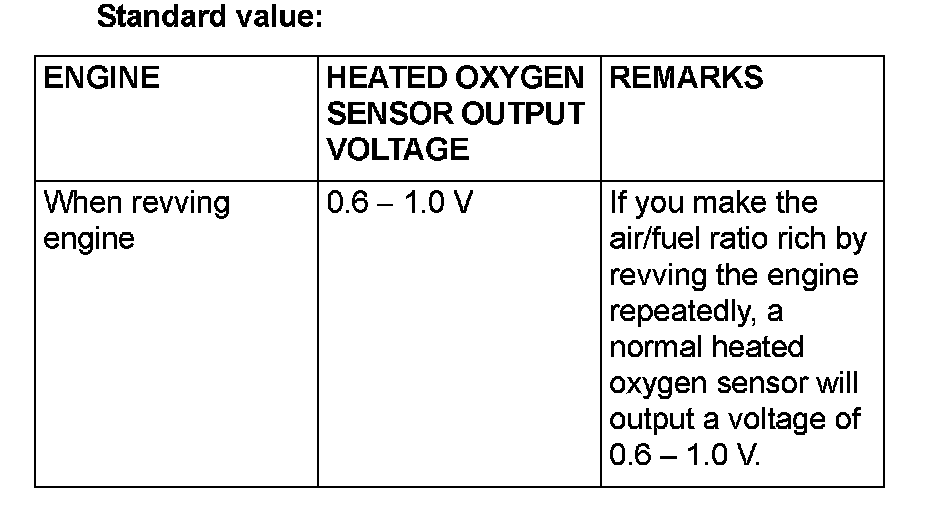 - Be careful the heater is broken when voltage of beyond 8 volts is applied to the heated oxygen sensor heater.