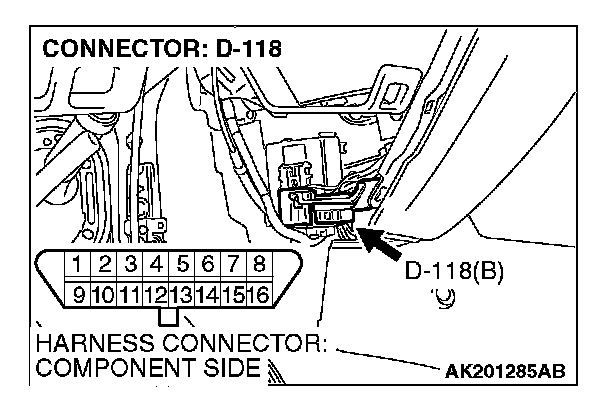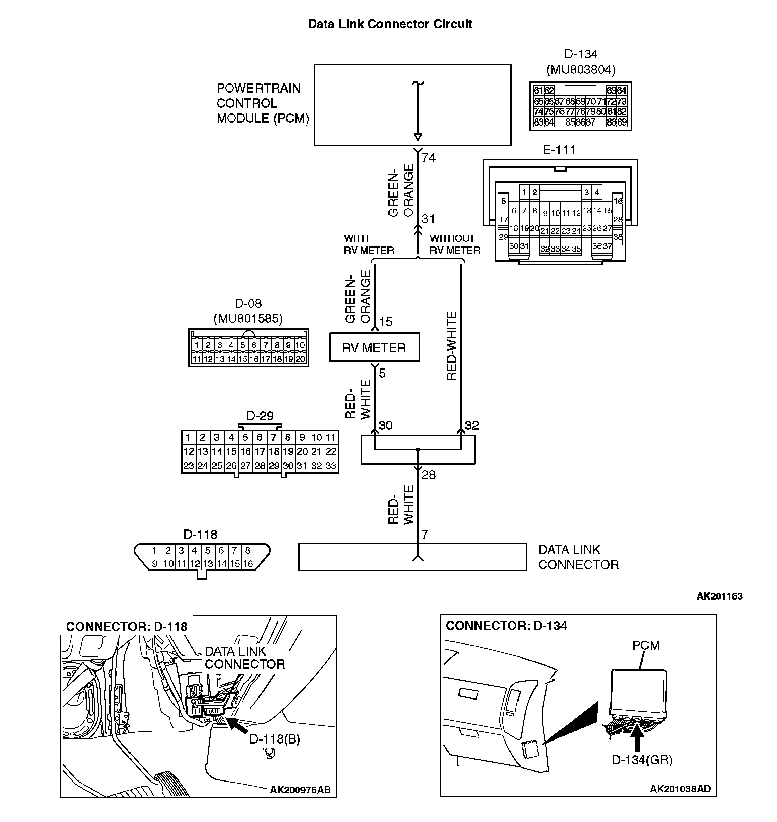 STEP 2. Check for open circuit, short circuit to ground and harness damage between data link connector D-118 (terminal No. 7) and PCM connector D-134 (terminal No. 74).