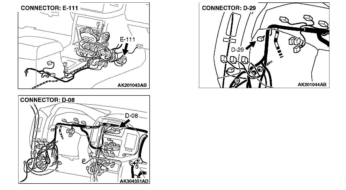 NOTE: Check harness after checking intermediate connectors D-29, D-08 and E-111. If intermediate connector D-29, D-08 and E-111 are damaged, repair or replace them. Refer to Harness Connector Inspection. Then check that the malfunction is eliminated.