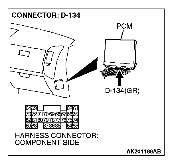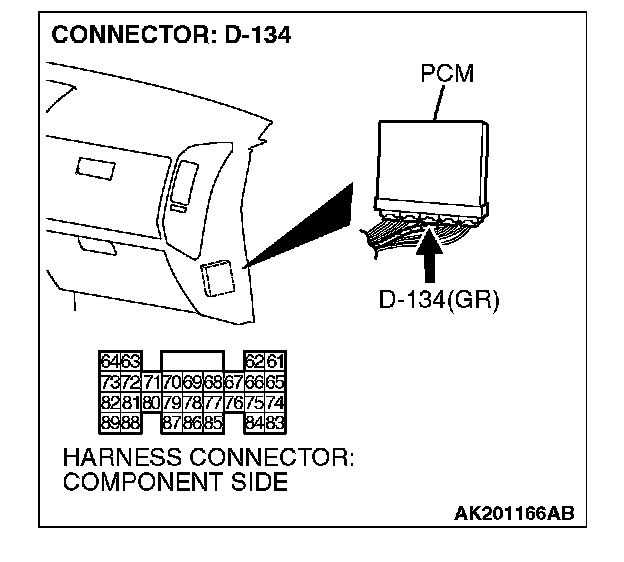 STEP 1. Check harness connector D-134 at PCM for damage.