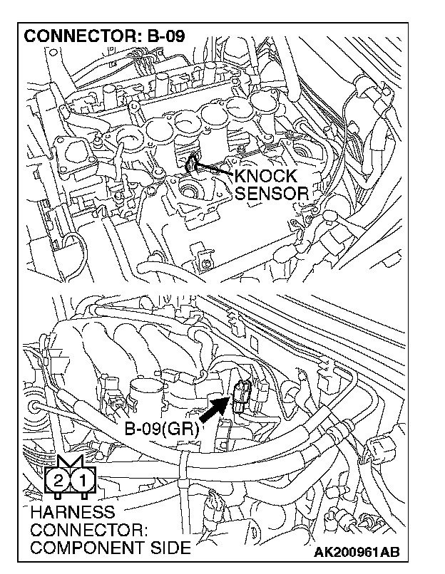 1. The ignition timing should retard more when knock sensor connector B-09 is disconnected than when it is connected.