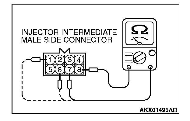 b. Measure the resistance between terminal No. 8 and No. 1 at No. 3 cylinder injector.