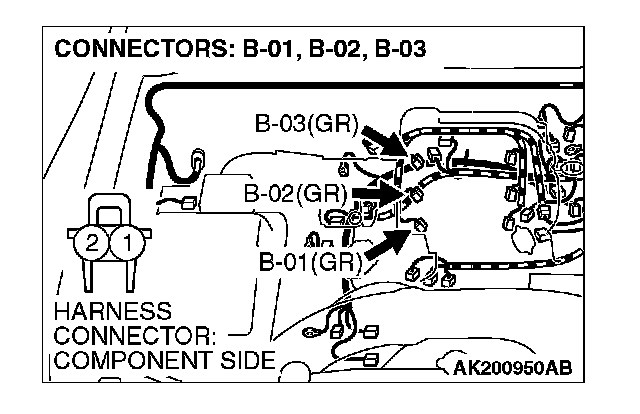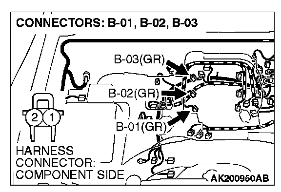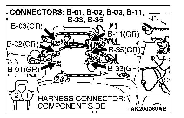 STEP 10. Check harness connector B-01 or B-02 or B-03 at right bank injector for damage.