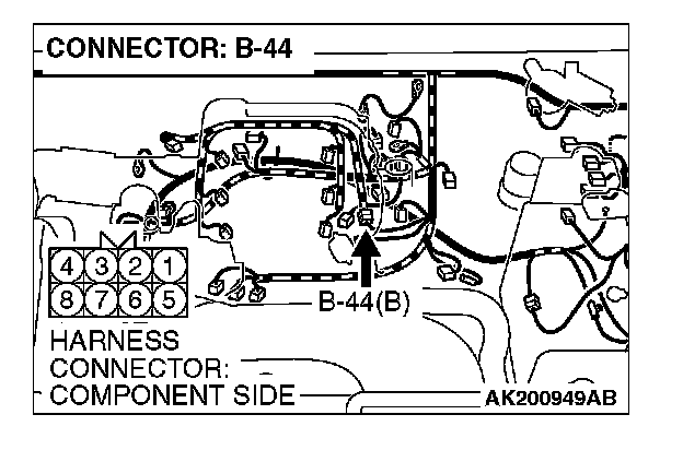 STEP 11. Check harness connector B-44 at injector intermediate connector for damage.