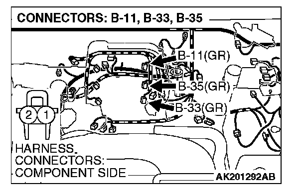 STEP 12. Check harness connector B-11, B-33, B-35 at left bank injector for damage.