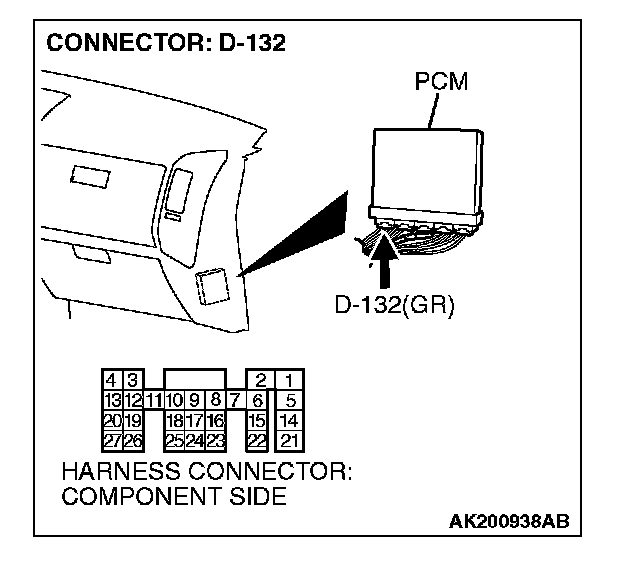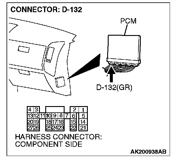 STEP 13. Check harness connector D-132 at PCM for damage.