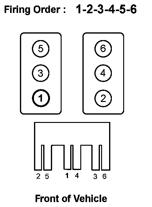 NOTE: This engine is a six-cylinder engine. The cylinder numbers are assigned as 1-3-5 for the right bank and 2-4-6 for the left bank from the front of the engine (timing belt side). This engine is fired in the order of 1-2-3-4-5-6 cylinders.