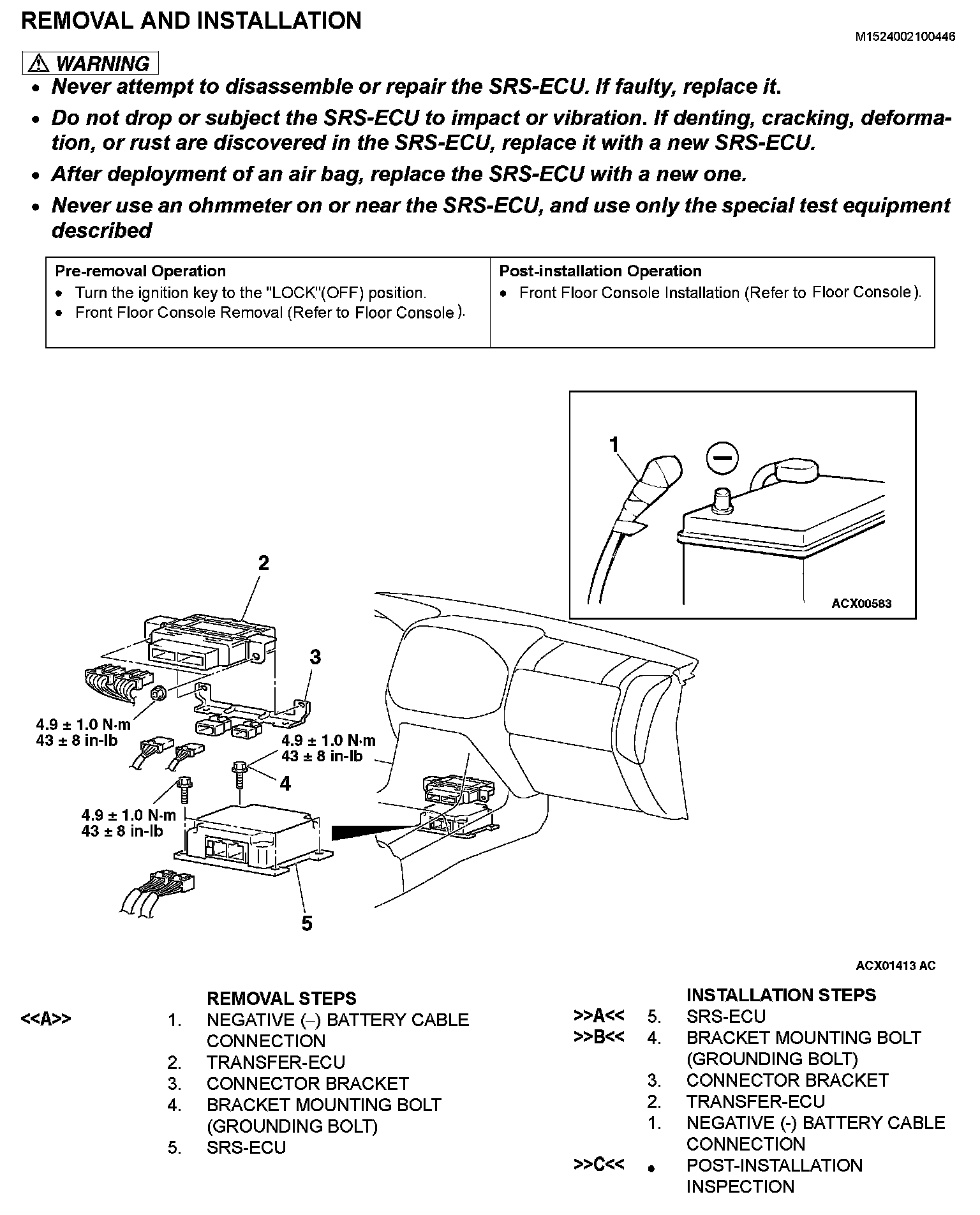 SRS CONTROL UNIT (SRS-ECU)Removal And Installation: