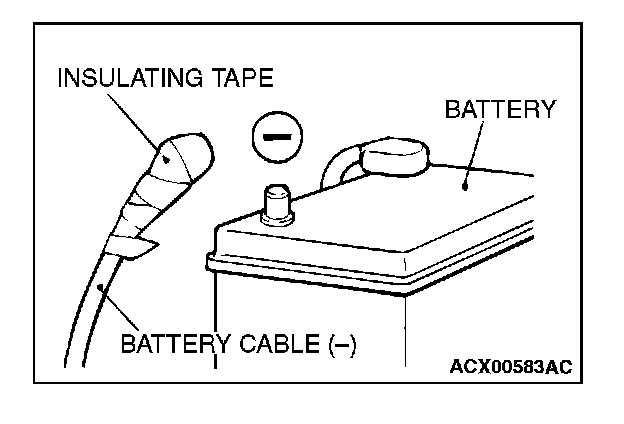 Disconnect the negative (-) battery cable from the battery and tape the terminal to prevent accidental connection and air bag(s) deployment.