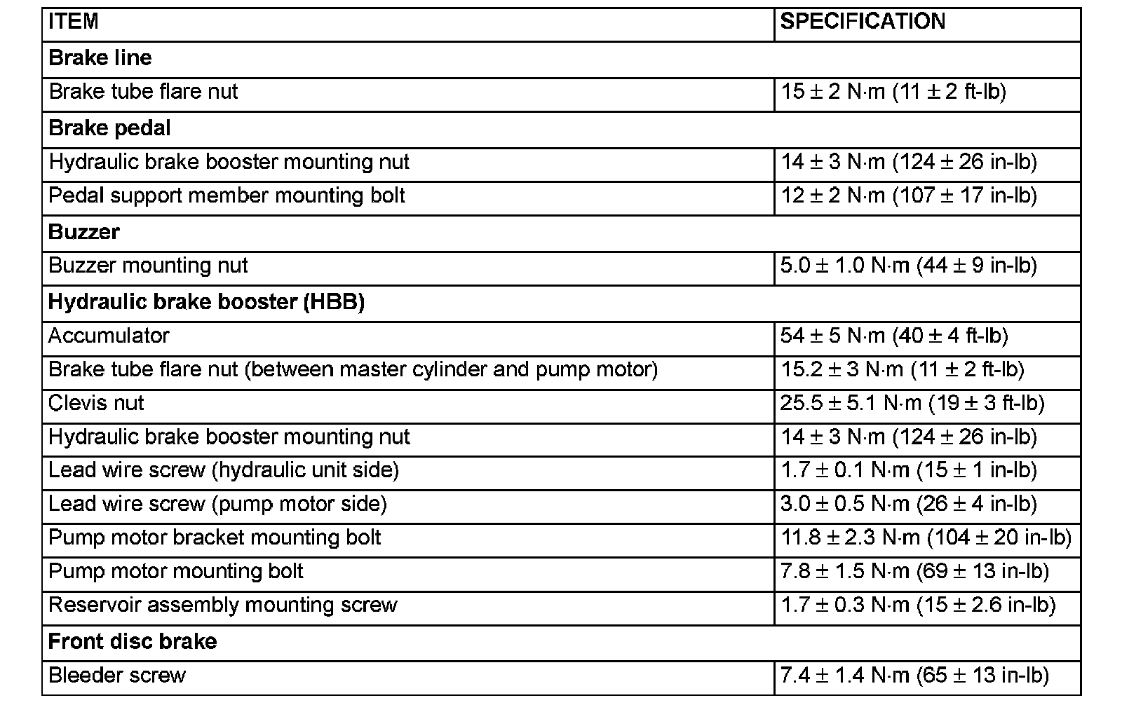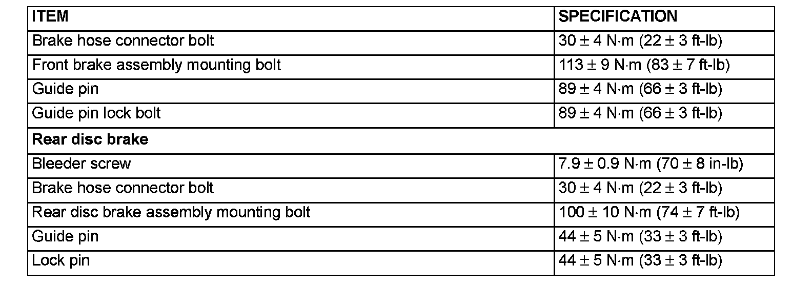 Fastener Tightening Specifications