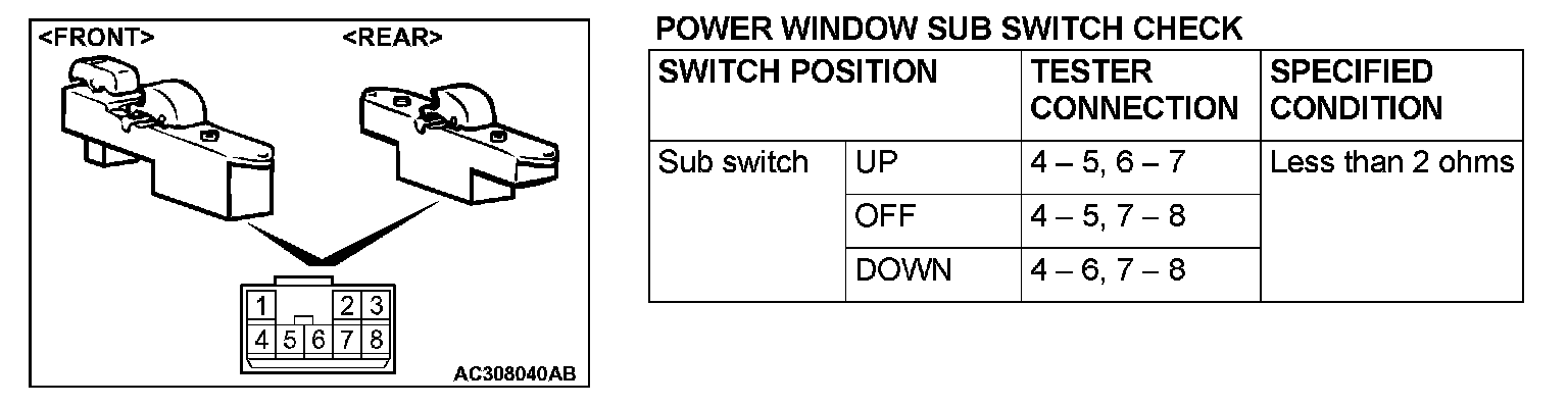 Power Window Sub Switch Check: