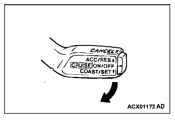 NOTE: When the vehicle speed reaches the low limit [approximately 40 km/h (25 mph)] during deceleration, the auto-cruise control will be cancelled.