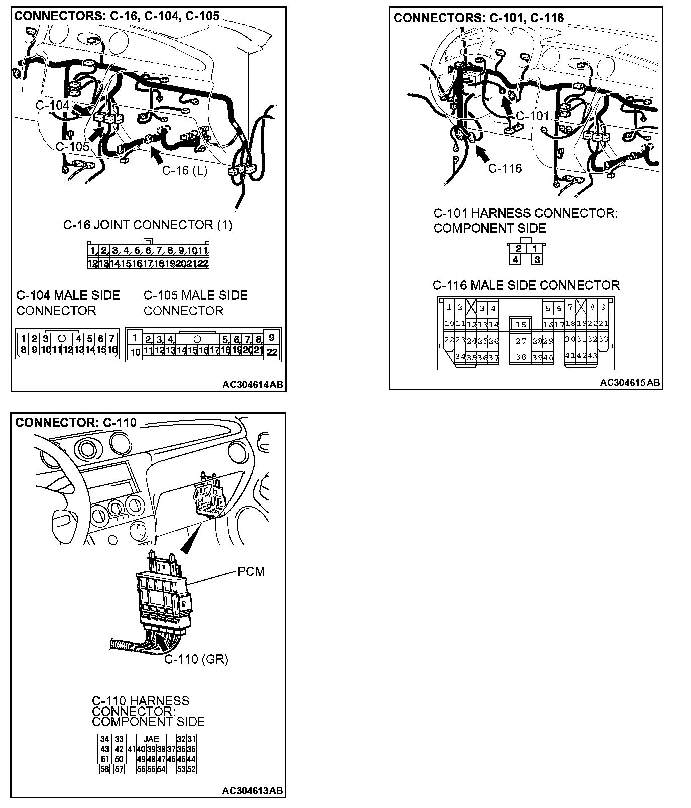 1. Do not disconnect PCM connector C-110.