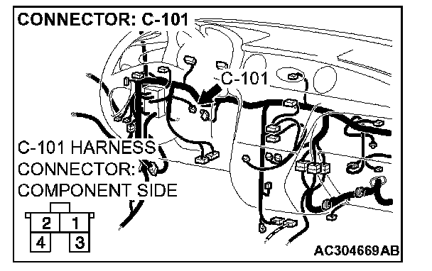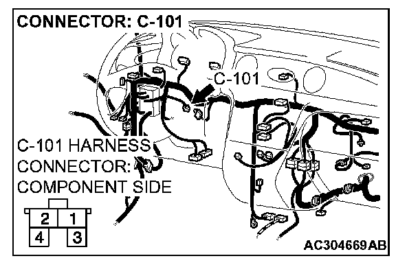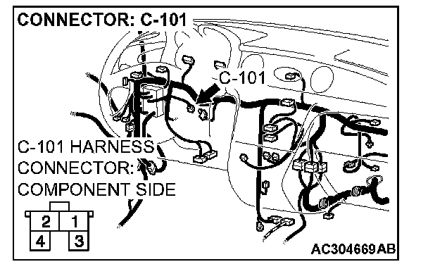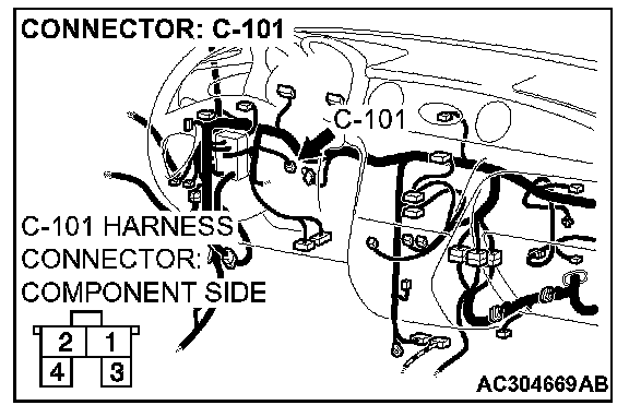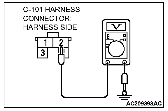 2. Measure the power supply voltage between stoplight switch connector C-101 terminal 2 and ground by backprobing.
