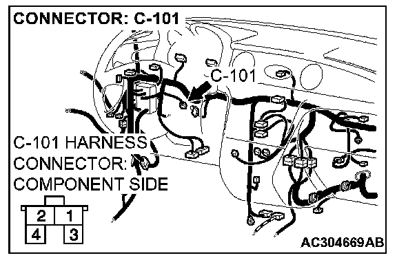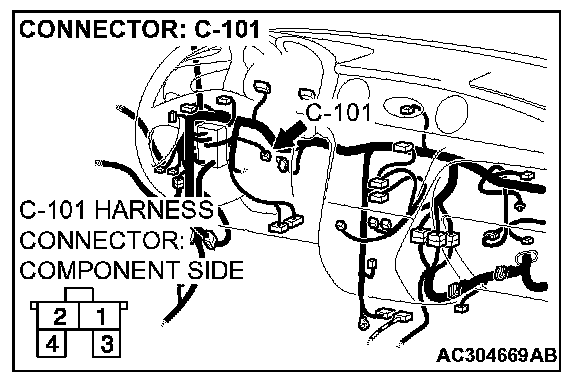 STEP 13. Check stoplight switch connector C-101 for loose, corroded or damaged terminals, or terminals pushed back in the connector.