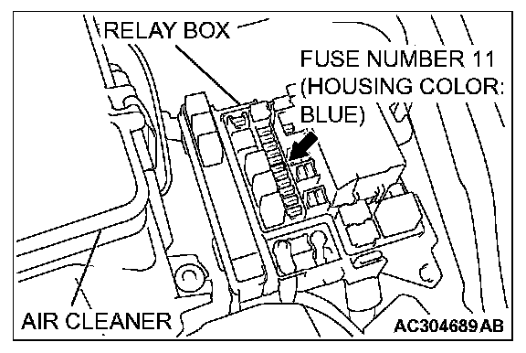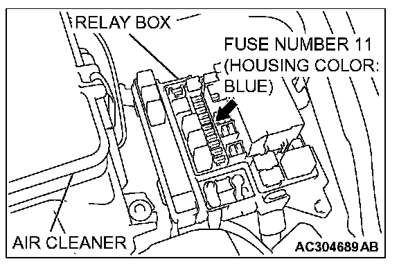 STEP 11. Check fuse number 11 at the relay box in engine compartment.