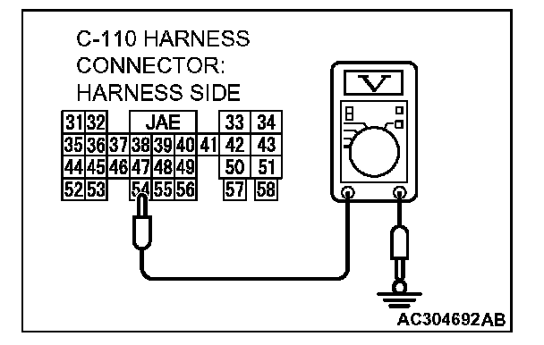 3. Measure the terminal voltage between PCM connector C-110 terminal 54 and ground by backprobing.