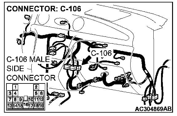 STEP 8. Check combination meter connector C-05, intermediate connector C-106 and PCM connector C-109 for loose, corroded or damaged terminals, or terminals pushed back in the connector.