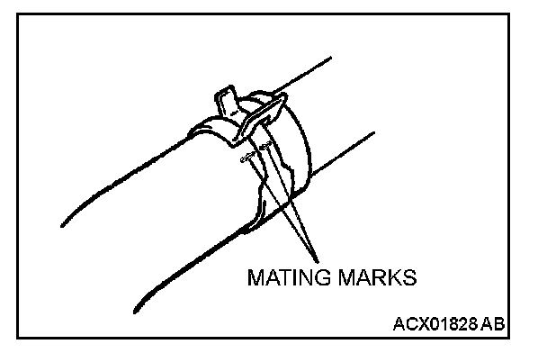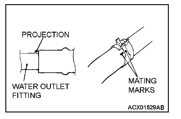 Make mating marks on the radiator hose and the hose clamp. Disconnect the radiator hose.