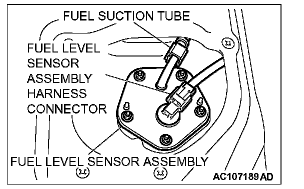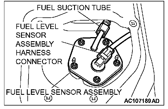 NOTE: If the standard resistance value or height of the float are out of standard value, replace the fuel level sensor assembly with a new one.