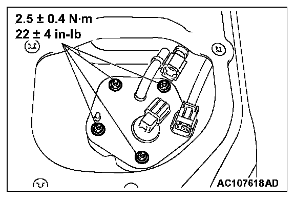 Tightening torque: 2.5 ± 0.4 Nm (22 ± 4 in-lb)