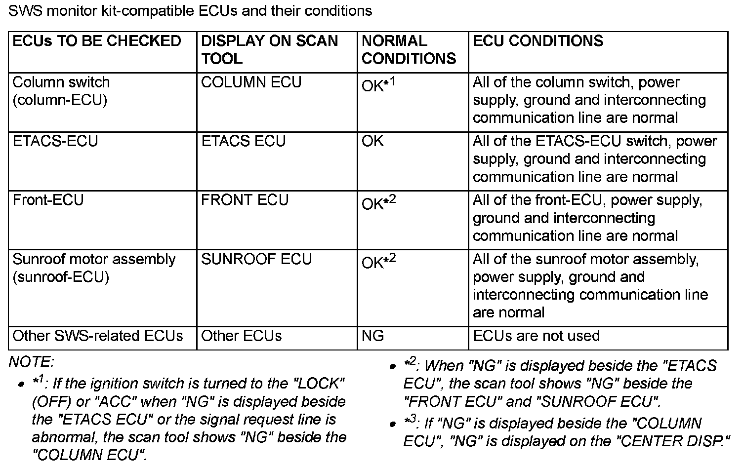 2. The given ECUs can be checked by using the scan tool and the SWS monitor kit.