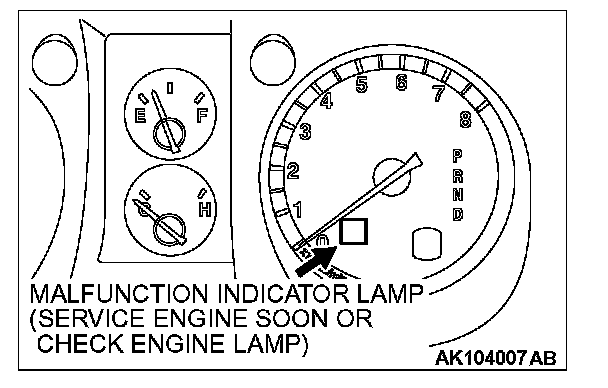 MALFUNCTION INDICATOR LAMP (SERVICE ENGINE SOON OR CHECK ENGINE LAMP)Among the on-board diagnostic items, a Malfunction Indicator Lamp (SERVICE ENGINE SOON or Check Engine Lamp) illuminates to notify the driver of an emission control malfunction.