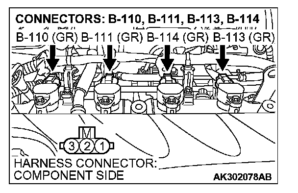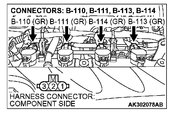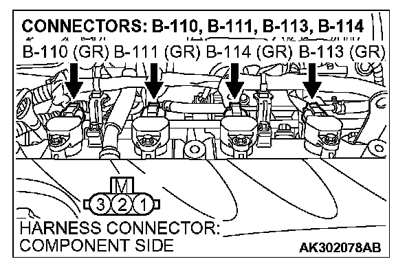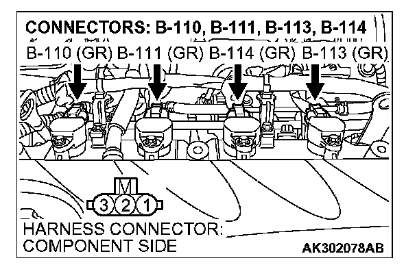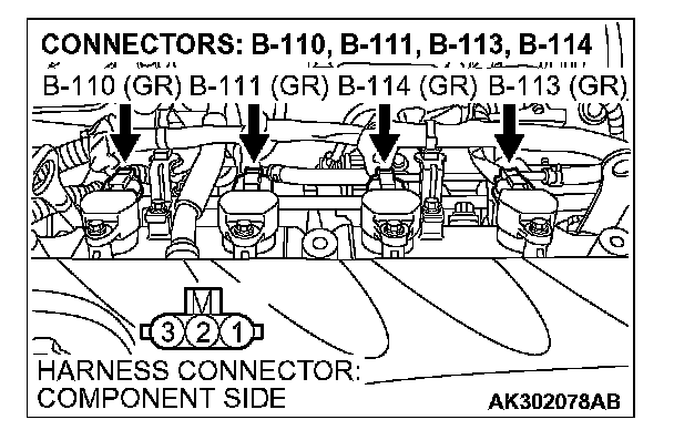 STEP 5. Check the circuit at ignition coil harness side connector B-110, B-111, B-113 and B-114.