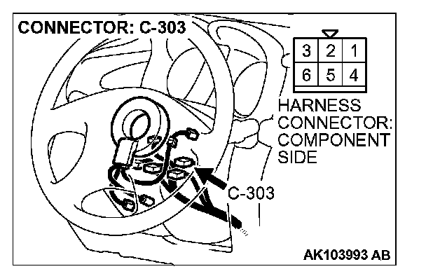 NOTE: Check harness after checking intermediate connectors A-14, C-116, C-203, C-205 and C-303. If intermediate connectors are damaged, repair or replace them. Refer to Harness Connector Inspection. Then confirm that the malfunction symptom is eliminated.