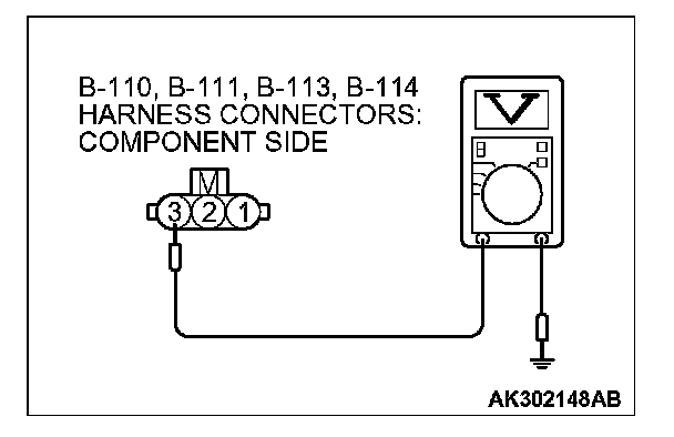 STEP 3. Measure the power supply voltage at ignition coil connectors B-110, B-111, B-113 and B-114.