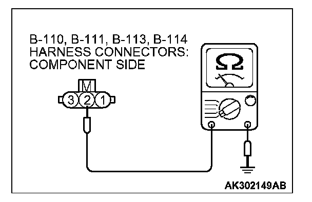 1. Disconnect the connector B-110, B-111, B-113 and B-114 and measure at the harness side.