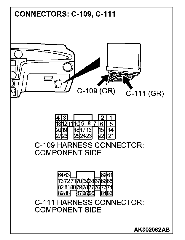 STEP 1. Check harness connector C-109, C-111 at PCM for damage.