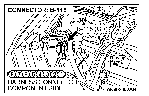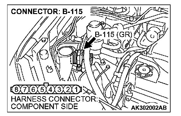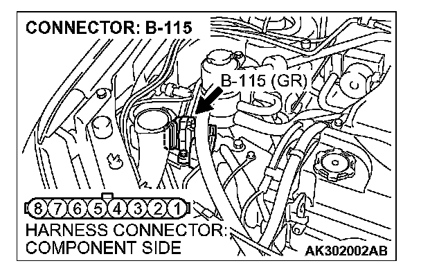 1. Disconnect the connector B-115 and measure at the harness side.