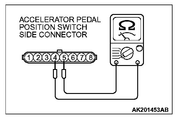 2. Check for continuity between the accelerator pedal position switch side connector terminal No. 4 and No. 5.