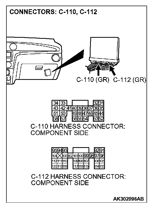 STEP 4. Check harness connector C-110 at PCM for damage.