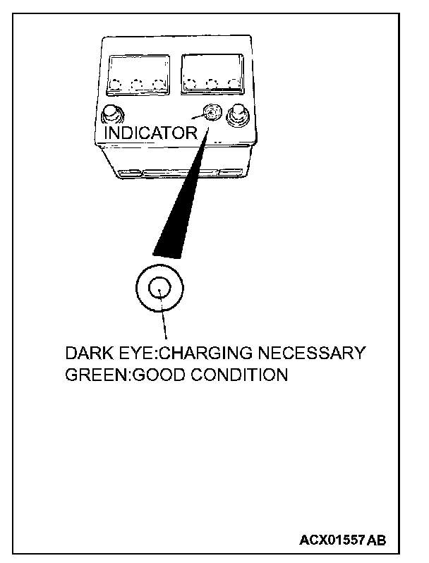 The battery contains a visual test indicator which gives a green signal when an adequate charge level exists, and a dark signal when charging is required.