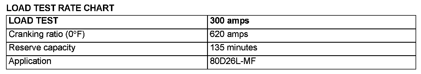 2. Load the battery at the recommended discharge rate (See LOAD TEST RATE CHART) for 15 seconds.