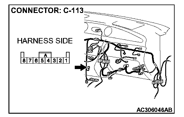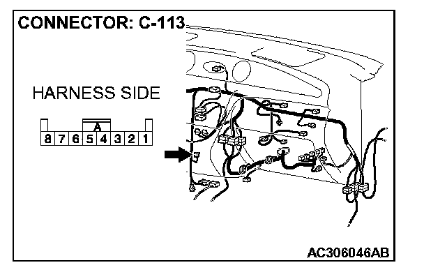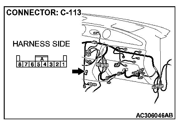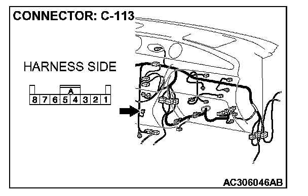 STEP 6. Check immobilizer-ECU connector C-113 for loose, corroded or damaged terminals, or terminals pushed back in the connector.
