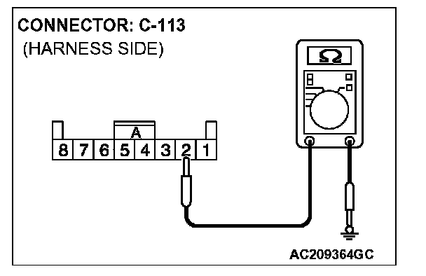 STEP 7. Check the harness wires between immobilizer-ECU connector C-113 (terminal 2) and ground.