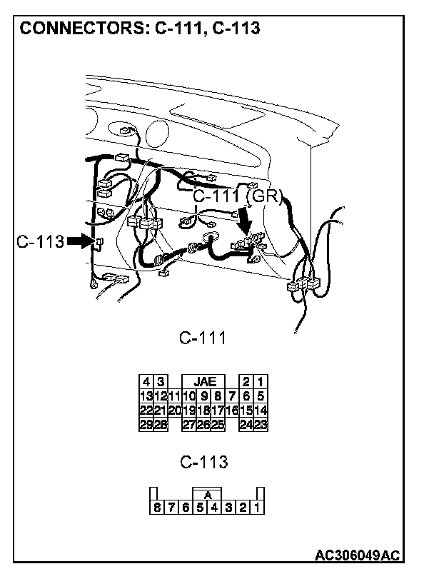STEP 8. Check immobilizer-ECU connector C-113 and PCM connector C-111 for loose, corroded or damaged terminals, or terminal pushed back in the connector.