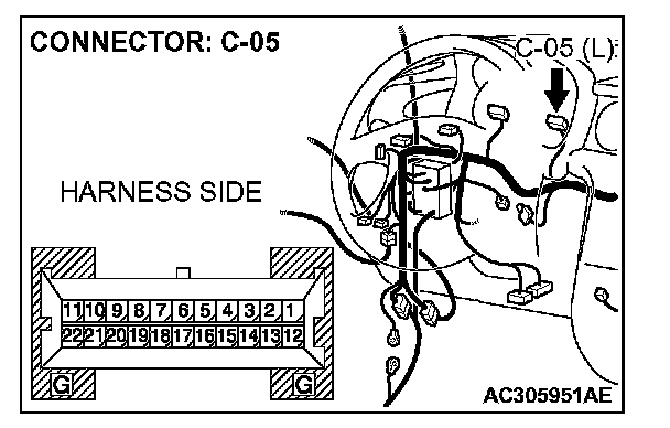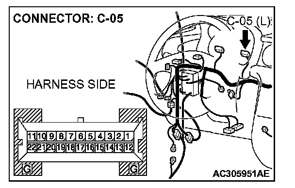 STEP 4. Check the wiring harness between combination meter connector C-05 (terminal 20) and immobilizer-ECU connector C-113 (terminal 5).